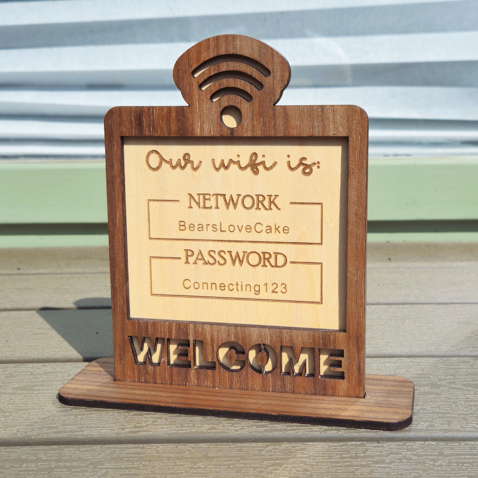 Wooden WiFi Welcome Sign