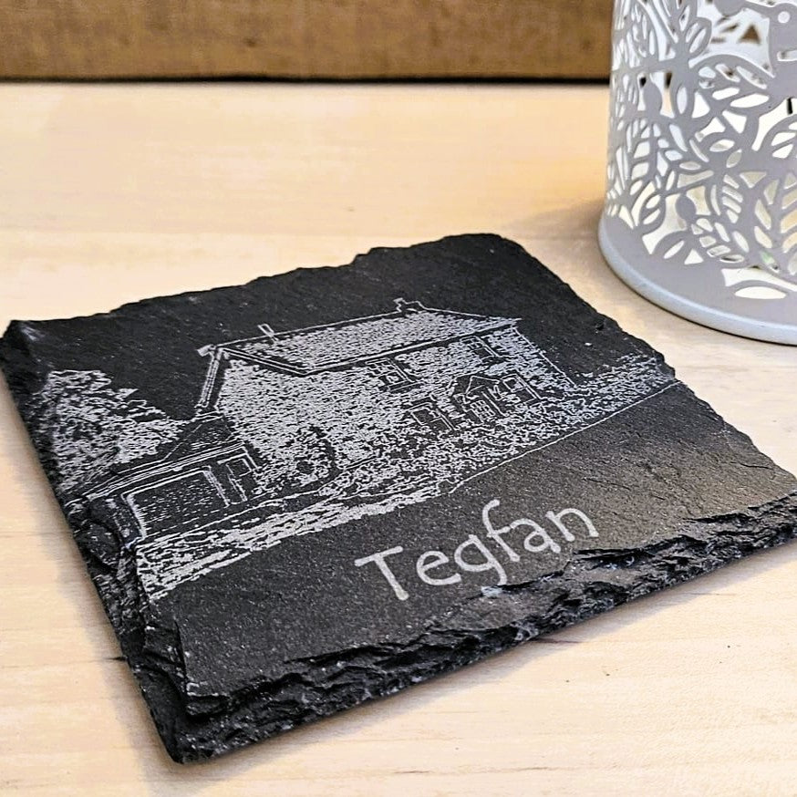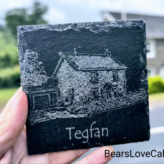Cherish the place you call home with our exquisite Custom House Slate Coasters. Each coaster is custom-engraved with your chosen image of a beloved house – be it your family residence, a childhood home, or a new beginning – creating a truly unique and heartfelt piece. Crafted from natural slate with a rustic edge, these coasters not only protect your surfaces but also serve as a beautiful, functional art piece. A perfect personalised gift for housewarmings, anniversaries, or simply to add a touch of personal charm to your own home.
