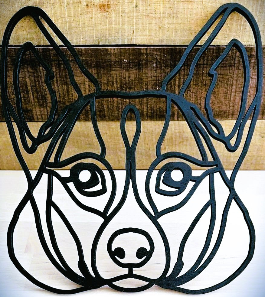 Bring a touch of canine charm to your home with this beautifully crafted geometric dog head wall art. Available in durable MDF or ply, its intricate lines create a modern silhouette that's perfect for living rooms, nurseries, or pet spaces. A unique piece for any dog enthusiast.