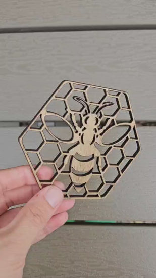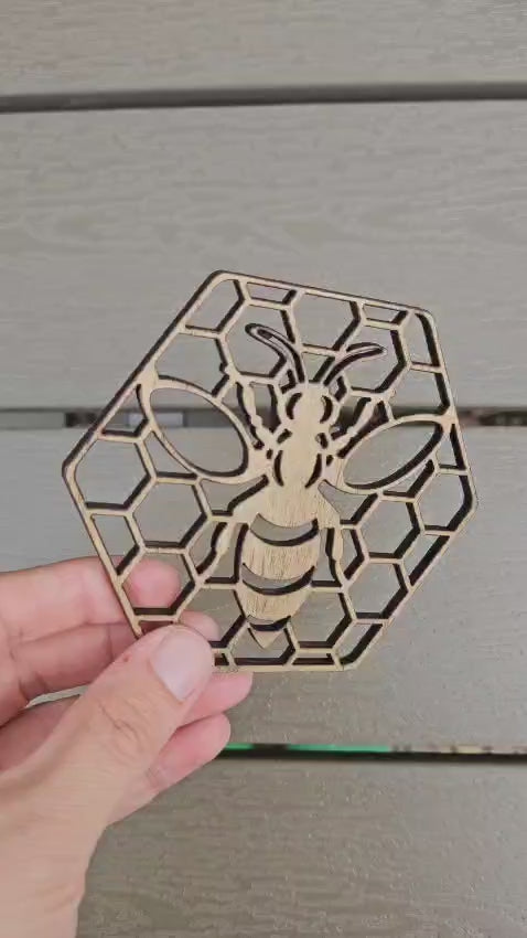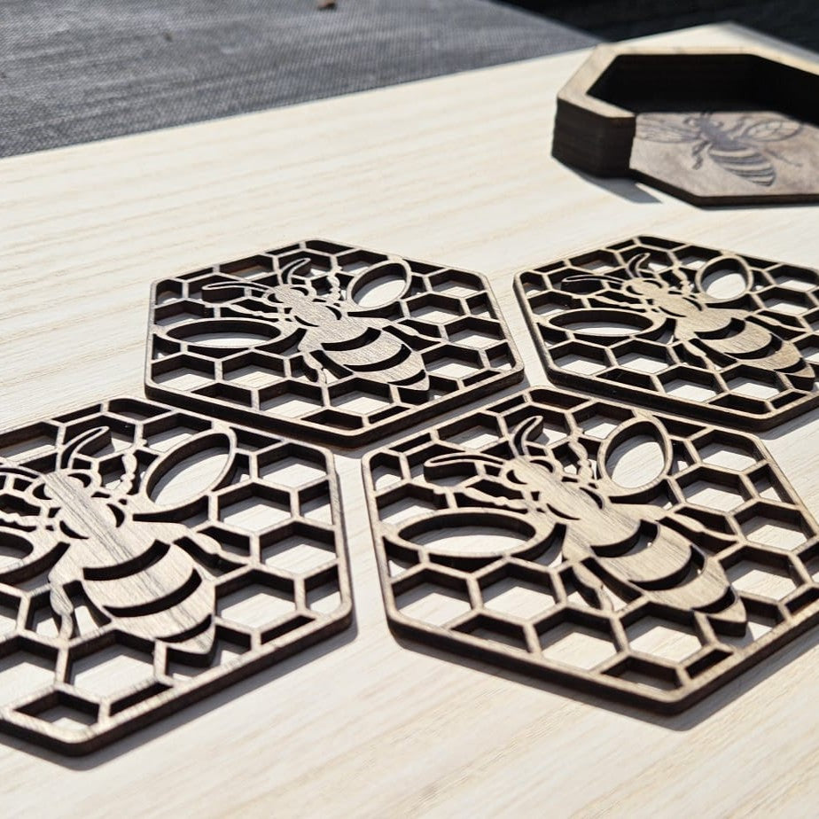 Bring the beauty of nature into your home with our charming Honeycomb Bee Wooden Coaster Set. Each coaster is exquisitely crafted from high-quality wood, featuring an intricate laser-cut design of a bee nestled within a delicate honeycomb pattern. Not only do these unique coasters protect your surfaces from spills and marks, but they also add a touch of rustic elegance and a nod to the vital work of our buzzing friends. Perfect for tea, coffee, or any beverage, this set includes a matching hexagonal holder for stylish storage. A delightful addition to any kitchen or living room in the UK, and an ideal gift for nature lovers, bee enthusiasts, or anyone who appreciates finely crafted homeware.